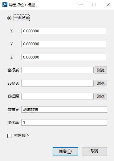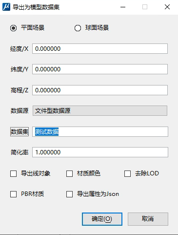 导出点位+模型缓存插件只提供平面场景导出,导出窗口设置方式与导出模型数据集类似。