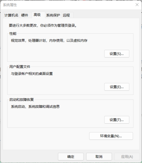 两种导出方式并不需要配置两套环境,这里的SuperMap Bin 为C++组件包,只需要配置一次即可。开始菜单搜索编辑系统环境变量,打开系统属性窗口,在右下角单机环境变量进行配置。