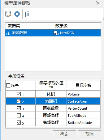 对模型数据集进行属性提取,主要提取为顶点数量及底部高程,其他部分可顺带提取。也可以不进行选择。提取后会再数据集属性表最后更新多列,可右键模型数据集进行查看。