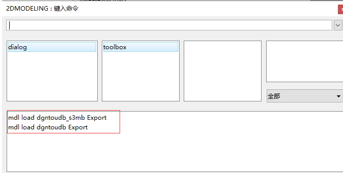 在键入命令中输入mdl load dgntoudb Export 开启模型数据集导出插件