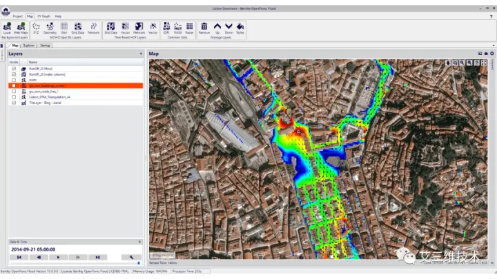OpenFlows FLOOD 拥有集成的 GIS 引擎,可打开、编辑和可视化建模所需的各种数据文件。可以赋予图层多种样式。