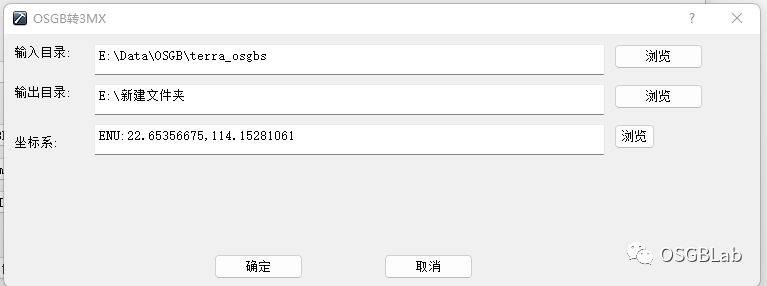 这里需要特别注意,这个输入目录一定要选择metadata.xml所在目录,如果设置好输入目录后,坐标系文本框没自动填充OSGB坐标系,那肯定是输入目录选错了。
