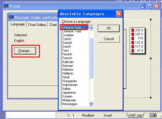 11. 重新在“Chart”控件下点击鼠标右键,我们可以看到中文的菜单了。下面是TeeChart8的编辑选项界面截图,TeeChart8就成功安装了。