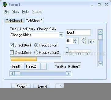 | TShemeColor=(csText,csTitleTextActive,csTitleTextNoActive, csButtonFace,csButtonText, csButtonHilight,csButtonlight,csButtonShadow,csButtonDkshadow, csSelectText,csSelectBg,csHilightText,csHilight, csMenuBar,csMenuBarText,csMenuText,csMenubg, csScrollbar,csTextDisable); TShemeColors=array[csText..csTextDisable] of Tcolor; Skindata.Colors: TShemeColors; 11 用户能自定义那些可视化控件的外观吗? 你可以使用skin builder自定义细节. 12 怎样取消美化某个窗体或控件? 设置form.tag=99 取消美化这个窗体。 13 如何在美化一个工程的窗体标题栏和菜单的风格? 设置TSkindata.skincontrols.xcMainmenu = false. |