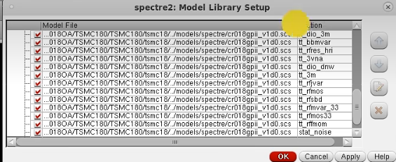 关于model library,一般在model - spectre或者Hspice 目录下面。不在的话,自己找找看,一般后缀为:scs--对应spectre;lib--对应Hspice。(Linux下面后缀没啥意义,只是起个标志作用,里面的内容其实是差不多的,可以混用的)。