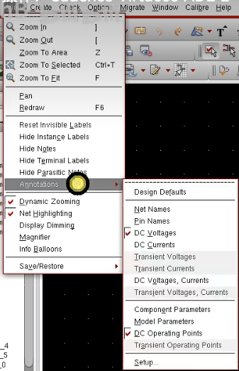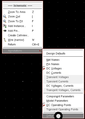 3.右键空白处,附注:Annotations - Setup 或者 schematic视图 - View - Annotations -Setup