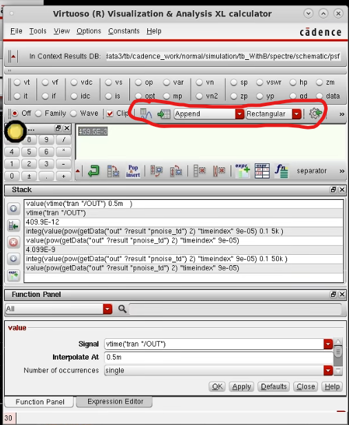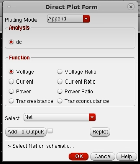 注意这里的Plotting Mode - Append / Replace 其中Append是保存上一个仿真图形,Replace 将上一次仿真波形替换了。这里的ADEL界面右下角也有这个选项
