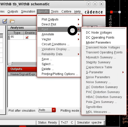 2.ADE中 Results - Print - DC Note Voltage / DC OP / Model Parameters