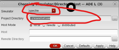 1.仿真器选择:如图,Setup里面有仿真器选择,一般选择spectre仿真,数模混仿真的话选ams,项目的Project Directory 选择仿真数据存放路径,默认是在:用户-Home路径下面,有时Home目录存储空间不够,需要自行在此更改路径(后期系统复杂Tran仿真可能会占用非常多的空间!)