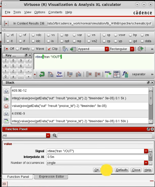 wave窗口,右键曲线 - Send To - Calculator 进行更多操作,例如取某一时刻值 value 函数