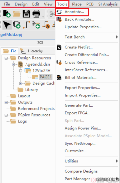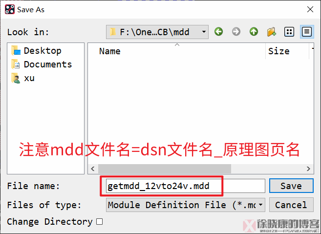 这里的dsn文件名为getmdd,加上下划线_,再加上原理图页名12Vto24V。当然你这里随便取个名字,然后在资源管理器中对*.mdd重命名也可以,效果一样。