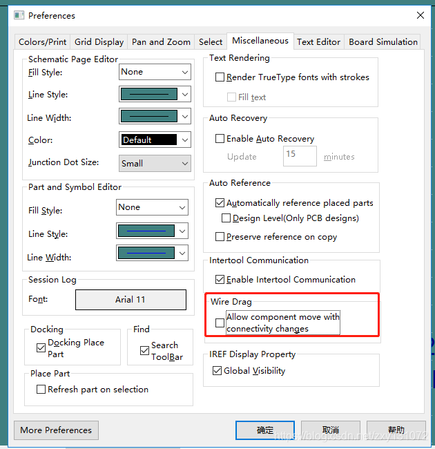 (3)可以通过软件设置,不允许这样连接;在Options/Preferences 下,Miscellaneous Tab,如下图,将方框内的选项去掉。