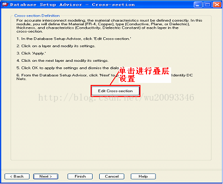 图 2-3 Database Setup Advisor-Cross_section 窗口