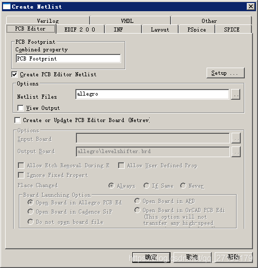 回到以上界面,点选本dsn文件->Tool->Create Netlist..出现以下界面。