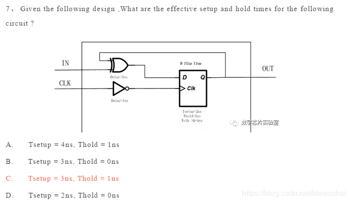 对于这种DFF的输出还会接回到自己的例子,因为这条path的clk其实是同一个clk,所以clk skew = 0。