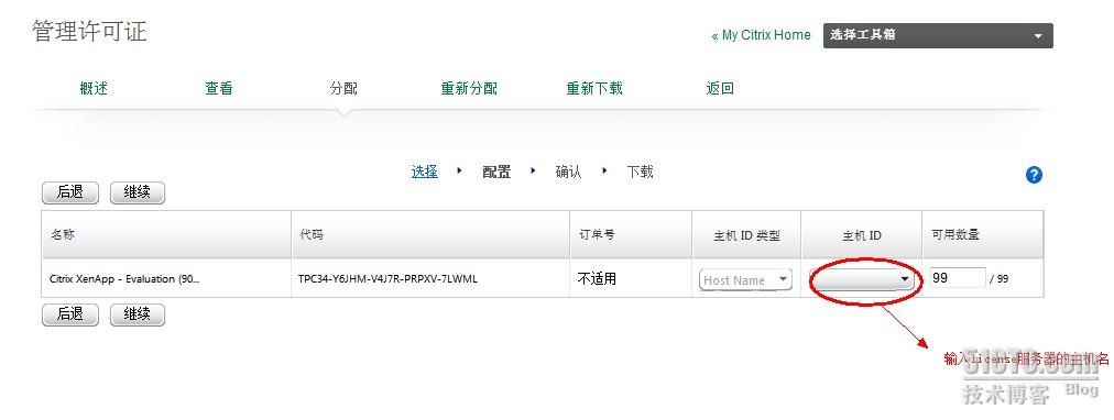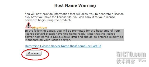 7.点击上图的continue后会出现下图所示:qing 在主机id中输入你要安装的license服务器地址