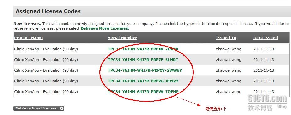 5.这时会出现license请随便选中一个测试的license