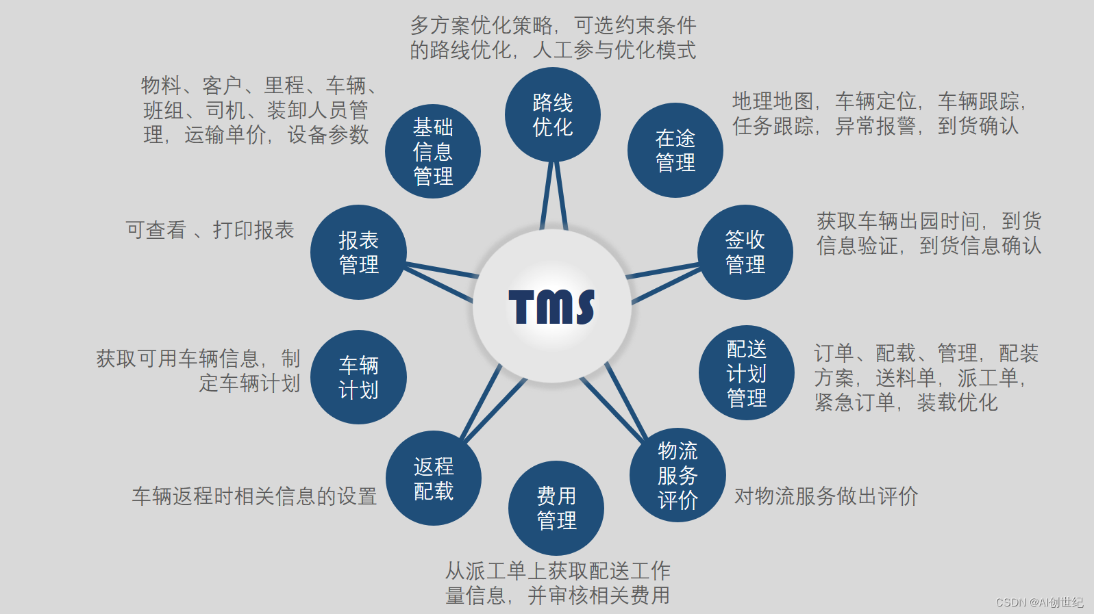 定义:是一种“供应链”分组下的(基于网络的)操作软件。它能通过多种方法和其他相关的操作一起提高物流的管理能力;包括管理装运单位,指定企业内、国内和国外的发货计划,管理运输模型、基准和费用,维护运输数据,生成提单,优化运输计划,选择承运人及服务方式,招标和投标,审计和支付货运账单,处理货损索赔,安排劳力和场所,管理文件(尤其当国际运输时)和管理第三方物流。