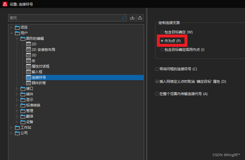 如果节点都以点绘制,文件——设置——用户——连接符号——选择作为点
