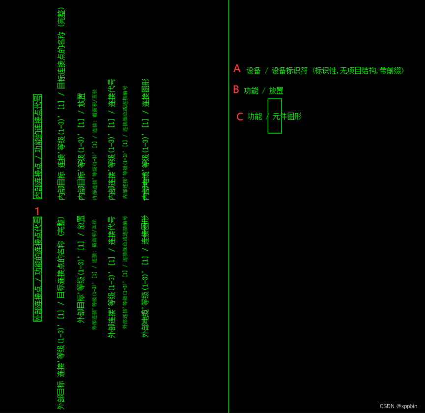 ②放1:内部连接点/功能连接点代号,,外部连接点/功能连接点代号。