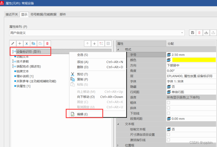想插入哪个文本,可以在元件的属性中,点编辑,找到元件的功能代号。