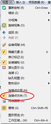 先打开显示——连接点代号和连接点方向。