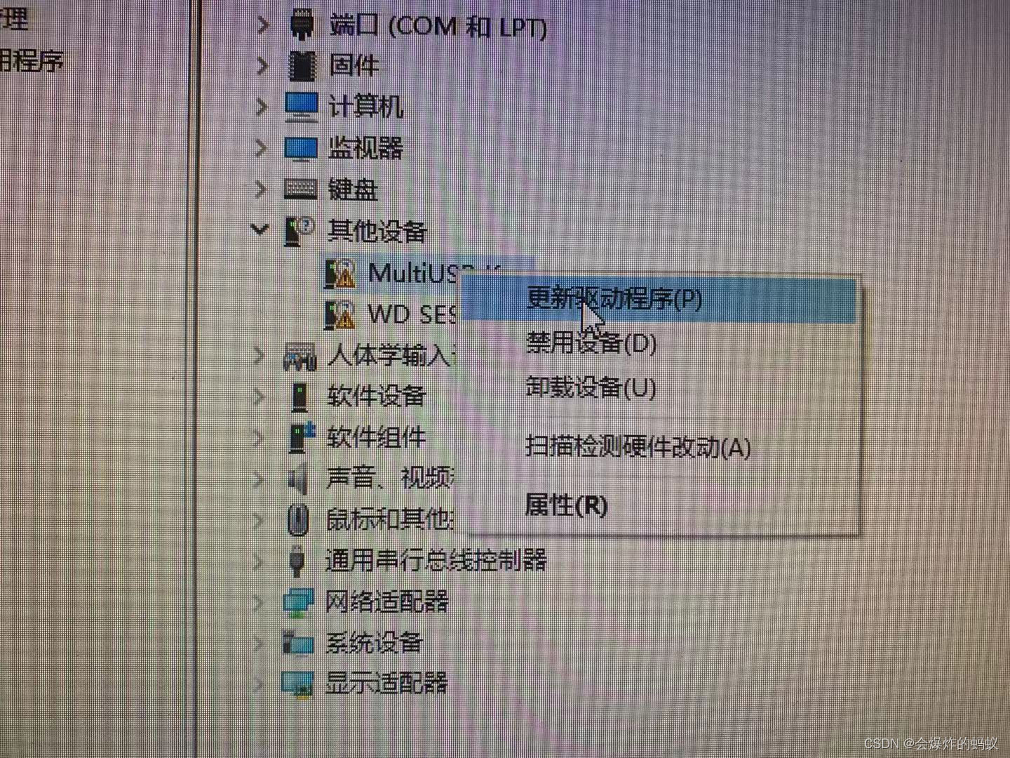 5.点击其他设备,选择如下驱动,然后右击更新 驱动程序