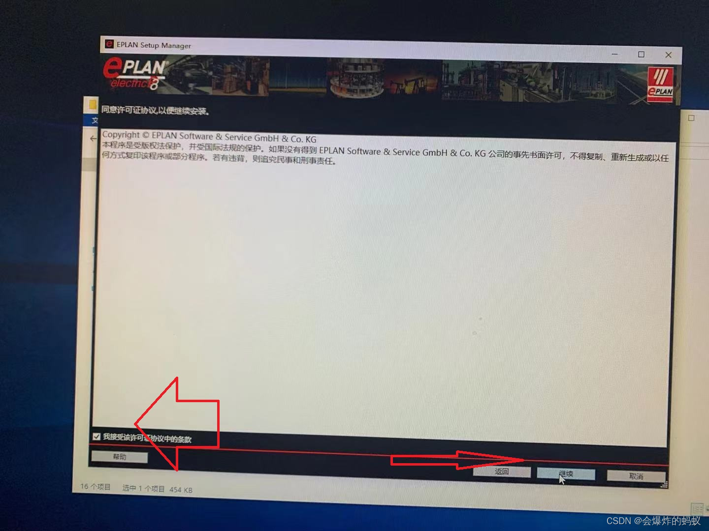勾选我接受许可条款后,点击继续: