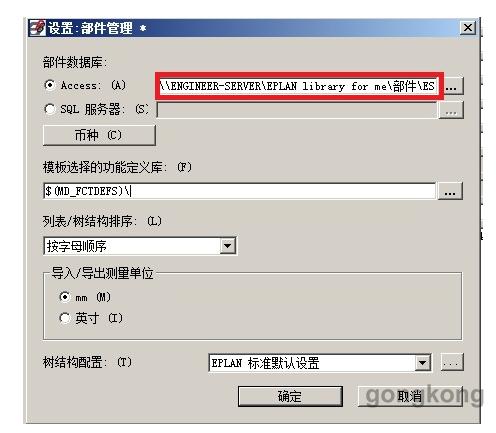 首先把部件库复制到一台共享服务器里,然后把工作站中的EPLAN部件库设置成共享服务器里的部件库。OK,好像能用了。呵呵,不要急,还有工作要做。我的服务器装的是WIN7 32位版的,为了使部件库日后维护方便,服务器里的部件库我只允许负责管理部件库的人有修改权,方法是共享部件库目录的时候设置共享权限时把管理员权限设置可读写,其他用户使用统一的GUEST账号只能读。说到这里插个话题,我的部件库不是放在EPLAN安装时指定的目录,而是在其它位置另外建了个新的库,把库里相关的资料(图片文件、宏文件、图框、表格等等)全部集中放在一起分目录管理,主要是为了维护方便。EPLAN共享部件库关联好以后,你会在部件库文件中看到新部件库的路径,如下图所示