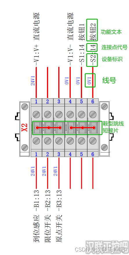 ② 电气原理图需按照下图绘制,设备标识、功能文本、连接点代号、连接定义点均配置完善。