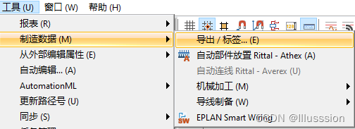 1.在 工具--制造 数据 菜单栏下找到 导出/标签 功能进入