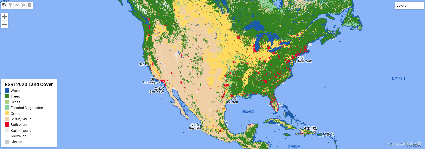 This dataset is based on the dataset produced for the Dynamic World Projectby National Geographic Society in partnership with Google and the World Resources Institute.非GEE用户下载链接: Esri 2020 Land Cover Downloader