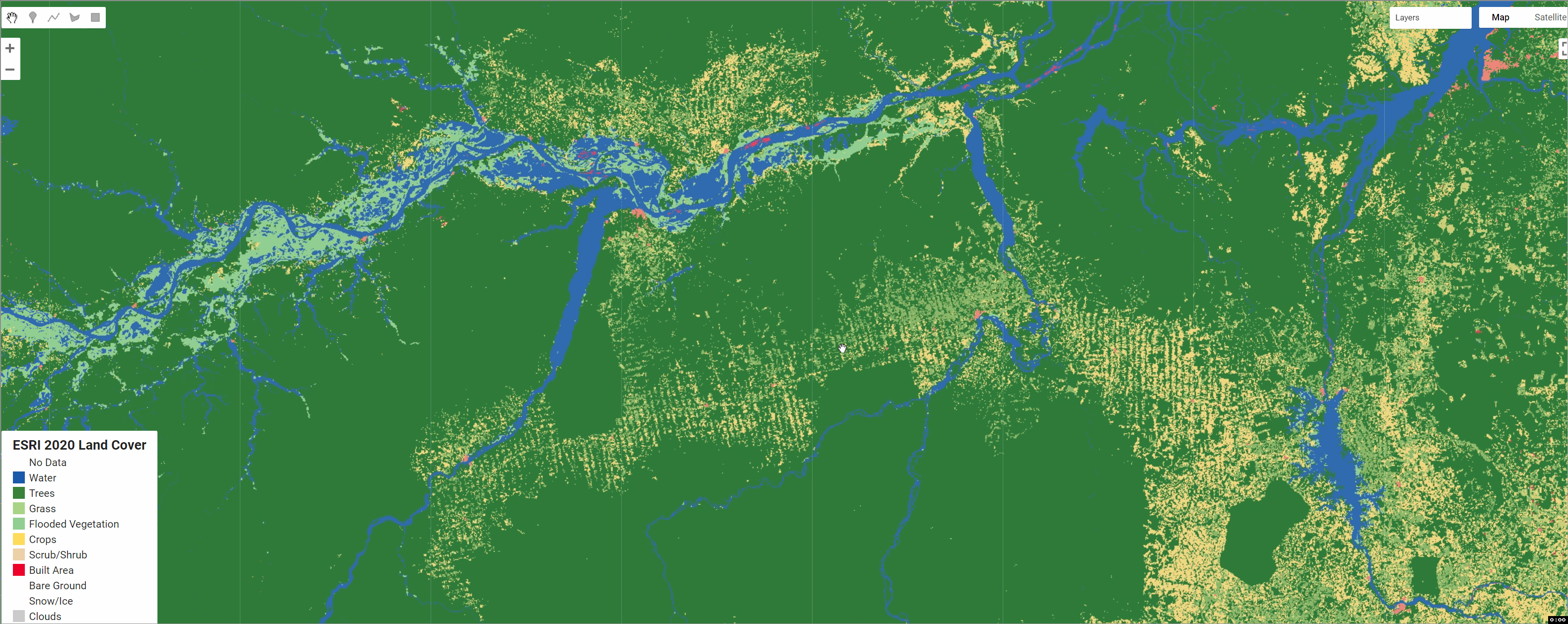 ESRI 10米分辨率的地球陆地表面地图,从2020年开始,GEE中的高分辨率、开放、准确、可比较和及时的土地覆盖地图。