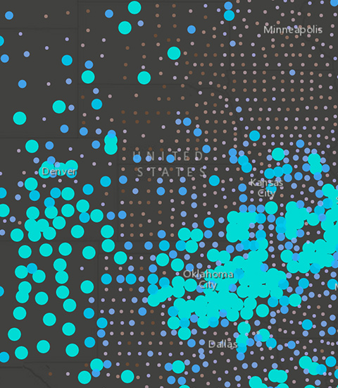 GIS帮助您深入了解电子表格中可能遗漏的数据。该地图可衡量不同行业的工作增长或损失,并量化当地的竞争优势。