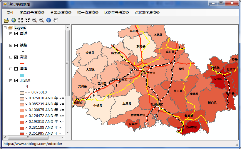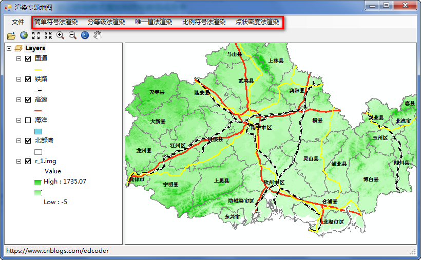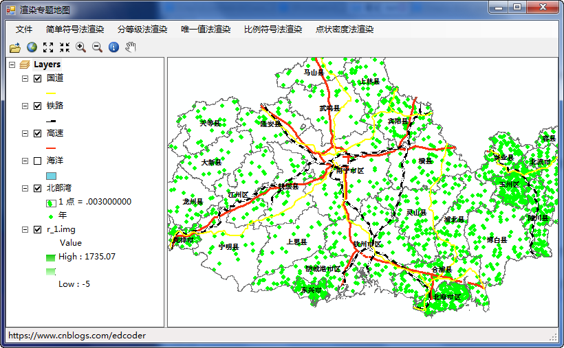④对指定图层的Render属性赋值, 完成专题图制作