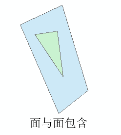描述:可细分为一个要素完全包含另一个要素和一个要素被另一个要素完全包含。它们是相对的关系,若果说要素A完全位于要素B内,则要素B完全包含要素A。当两个图形完全相等时,即相互包含。