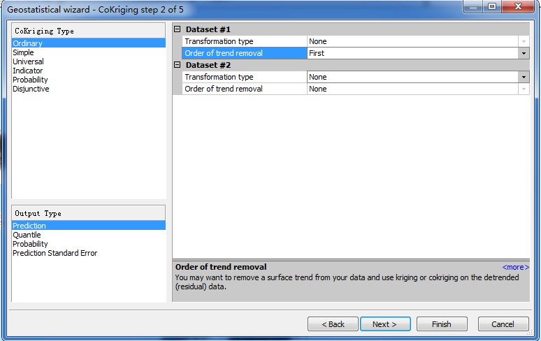 第二步:由经验知我国的降水由东南往西北会递减,在这里选择“First”以剔除降水分布的趋势分布(一次);