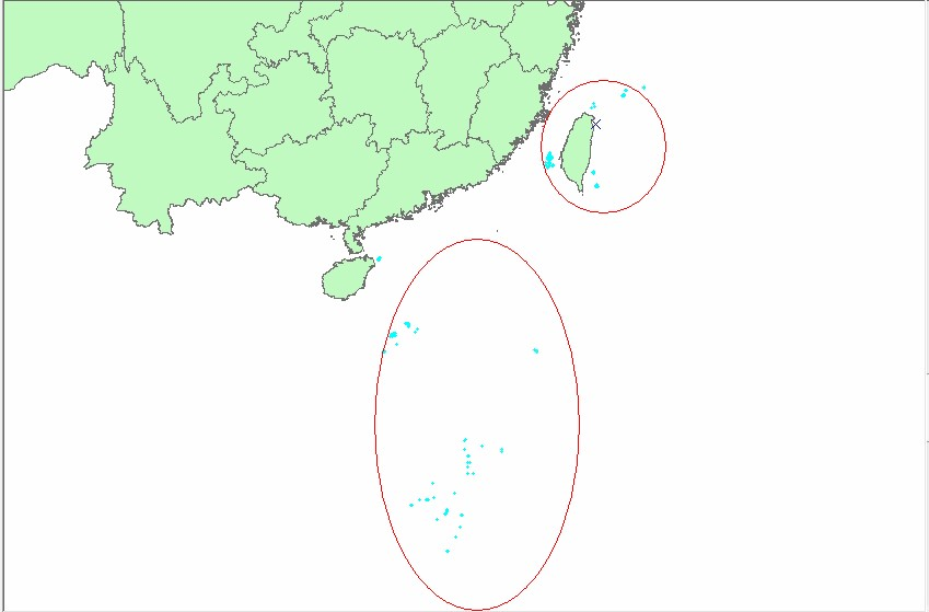Step 1-3:放大图我们可以看到,沿海一带有很多面积很小的岛屿,为了制图的美观,我们需要删掉一些面积小的岛屿,但是在这之前,我们必需把南海诸岛以及台湾周围的岛屿保留下来(原因大家都懂的)。