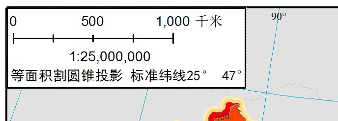 在左上角添加比例尺和投影信息。