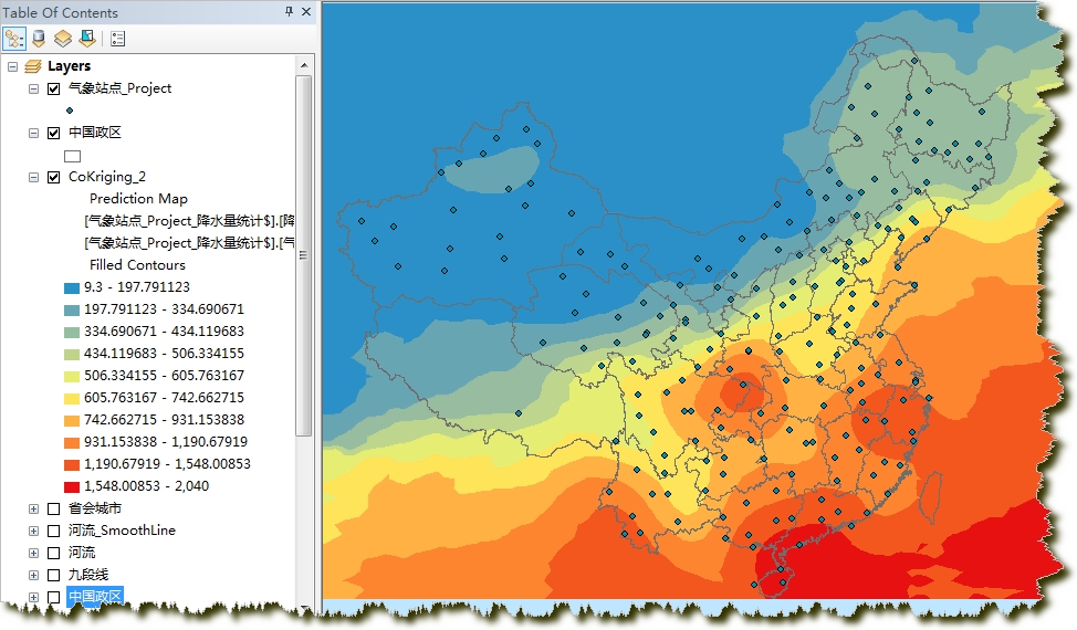 到这里,我们就完成了中国年降水量的插值了。