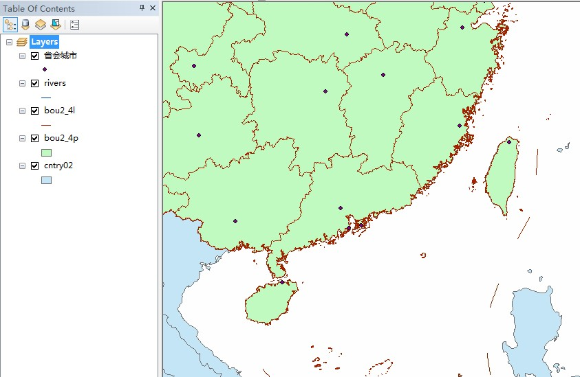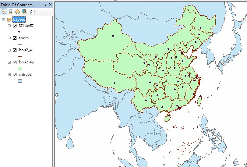 (1)先在网上下载中国地图shp格式的文件以及中国省级行政中心的shp文件(网上一搜就有了,不过我还是建议在国家基础地理信息系统(nfgis.nsdi.gov.cn/nfgis/Chinese/c_xz.htm)上下载来保证数据的权威性,不过这个网站经常上不去);