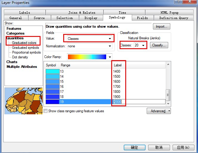 双击降水量图层,设置如下: