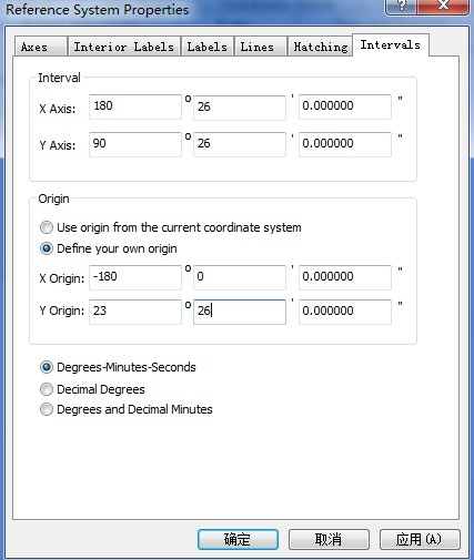 双击数据框“Layers”打开Data Frame Properties对话框,切换到“Grids”选项卡,点击“New Grid…”,保持默认一直到Finish。点击“Properties…”打开“Reference System Properties”对话框。