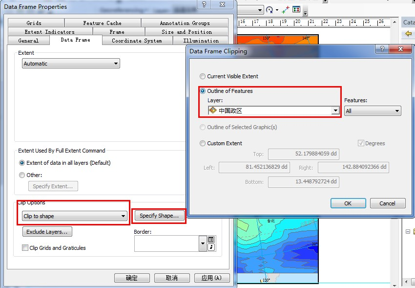 方法一:动态裁剪法。双击数据框Layers,设置图层的裁剪范围: