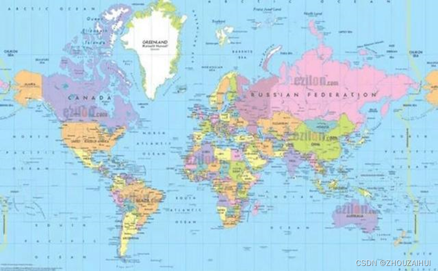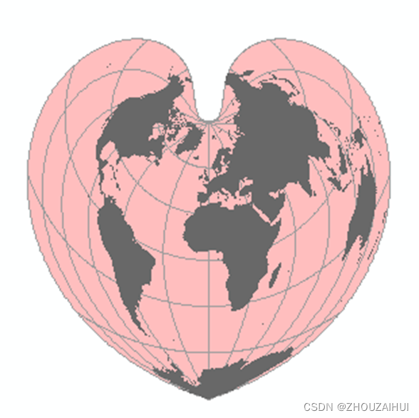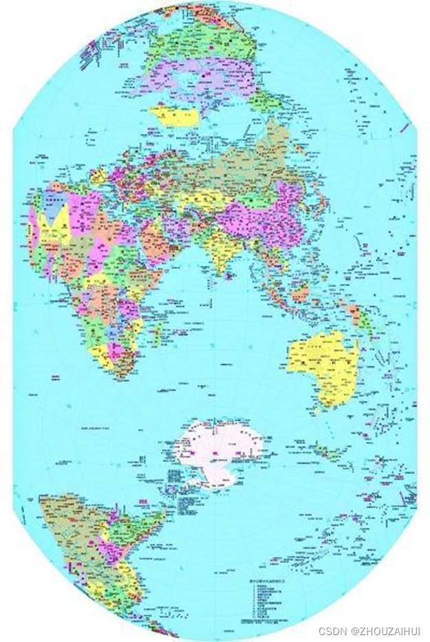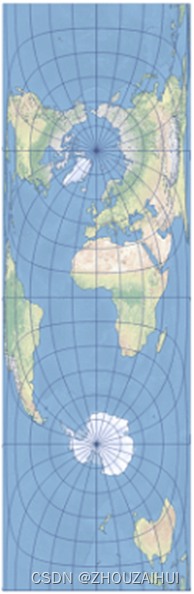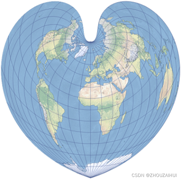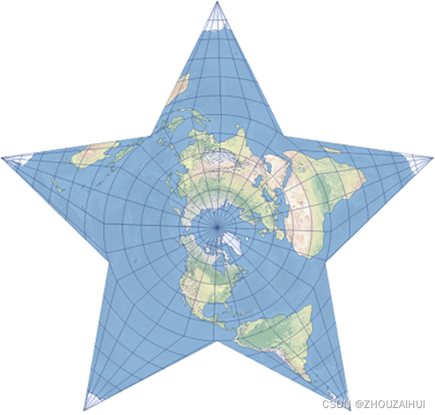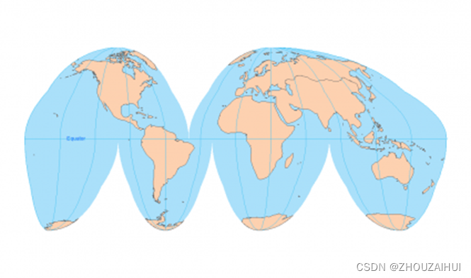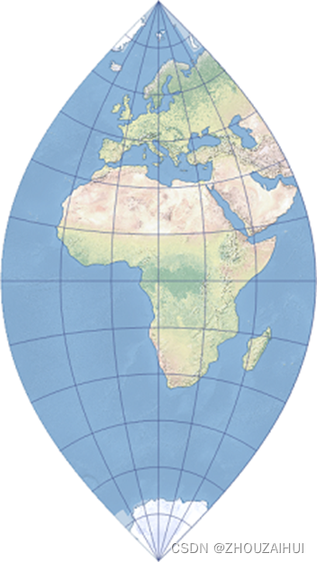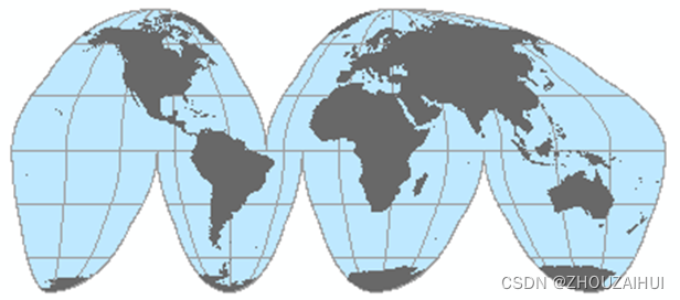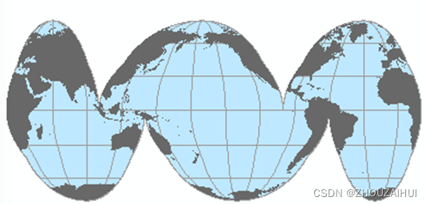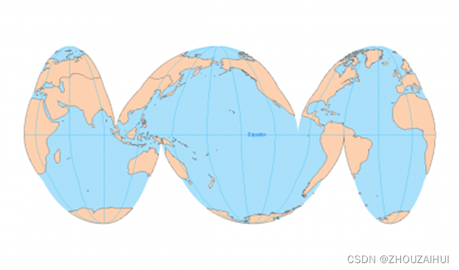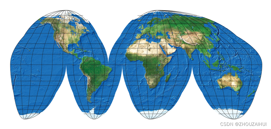 缺点是由一些弧线围起来的区域将在此过程中发生巨大变形。地图投影无法保留较大区域的形状。