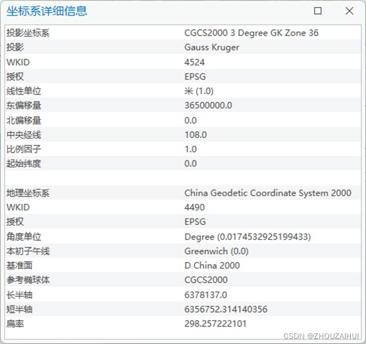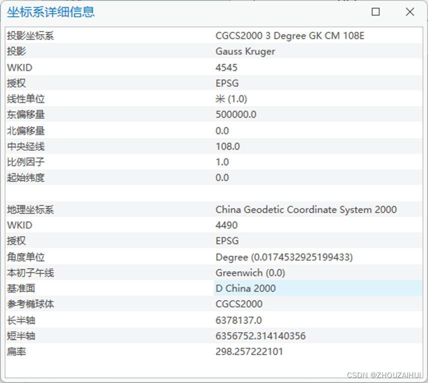 投影坐标系 CGCS2000 3 Degree GK CM 108E