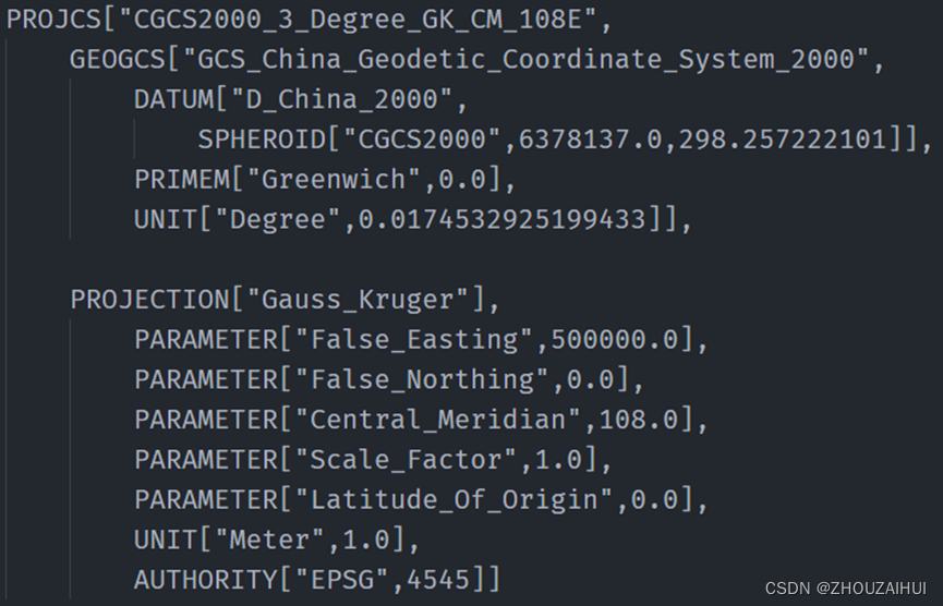 AUTHORITY["EPSG", "4326"]指的是地理坐标系WGS 84的ID是4326;