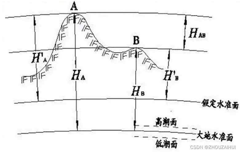 根据地球重力场的特性,可找到重力位处处相等的很多个等位面,可理解为水在静止状态下形成的曲面,测量学称之为水准面。测量学研究的是在整体上非常接进地球表面的水准面,是一个无波浪、无潮汐、无水流、无大气压变化,处于流体平衡状态的静止海平面。以这个海平面为基准面并向大陆岛屿延伸围合形成一个封闭曲面,即测量学中的大地水准面。