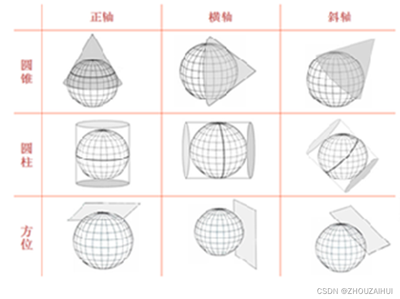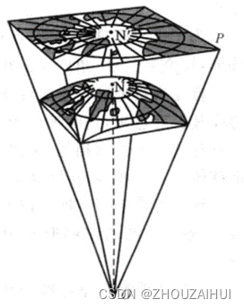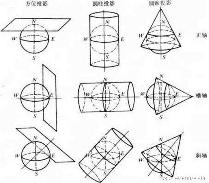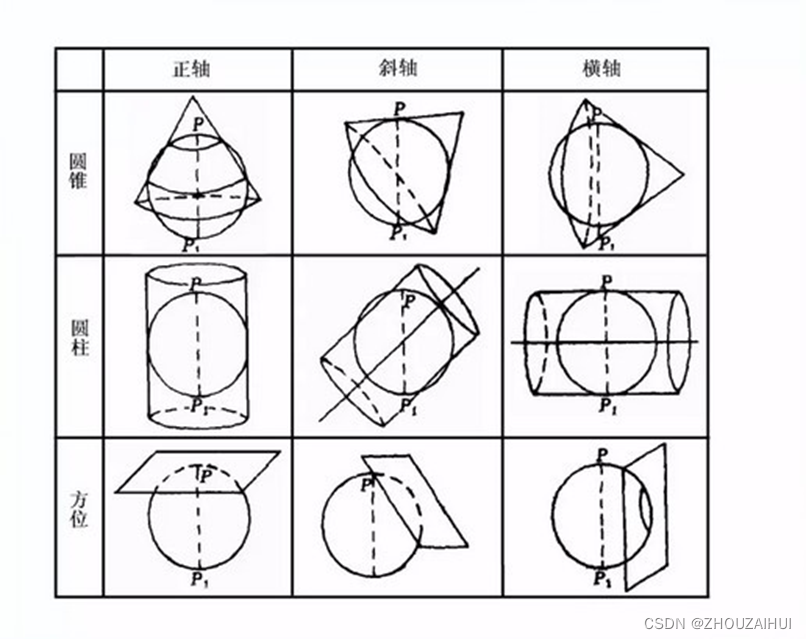 (1)正轴投影:极点在两地极上,或投影面的中心线与地轴一致。