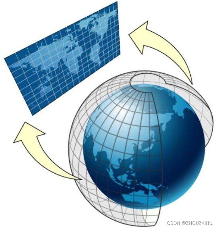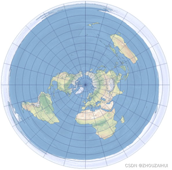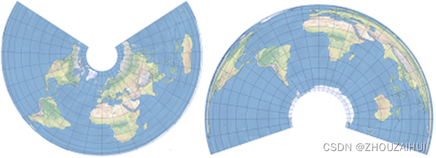 平面投影将地图数据投影到与地球接触的平面。平面投影也称为方位投影或天顶投影。